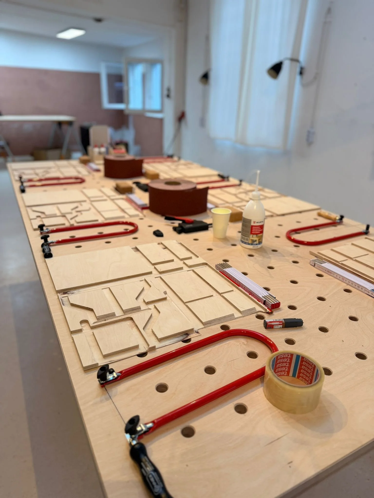 Beim zweiten Konzept arbeitet die Gruppe gemeinsam an einem größeren Objekt. Statt vieler einzelner Produkte entsteht ein gemeinsames Werkstück, das später von allen genutzt werden kann.